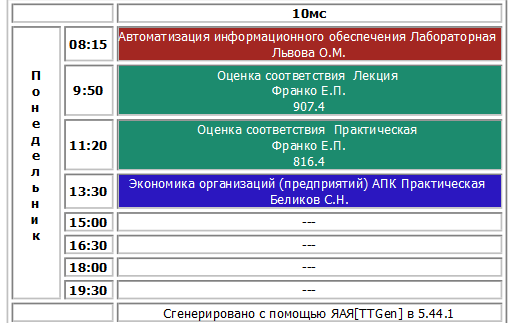 программный комплекс по составлению расписания "ЯАЯТТGen"